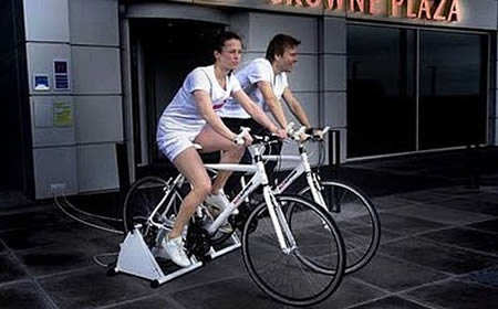 Sungguh menarik hanya dengan bersepeda selama 15 menit kita bisa menghasilkan . Yaitu Crown Plaza Hotel di Kopenhagen, Denmark, yang menawarkan makanan gratis untuk setiap tamu yang mampu menghasilkan listrik untuk hotel melalui sepeda yg melekat pada generator. Para tamu harus memproduksi watt setidaknya 10 tenaga listrik - atau sekitar 15 menit bersepeda,Mereka kemudian akan diberikan voucher makan senilai $ 36